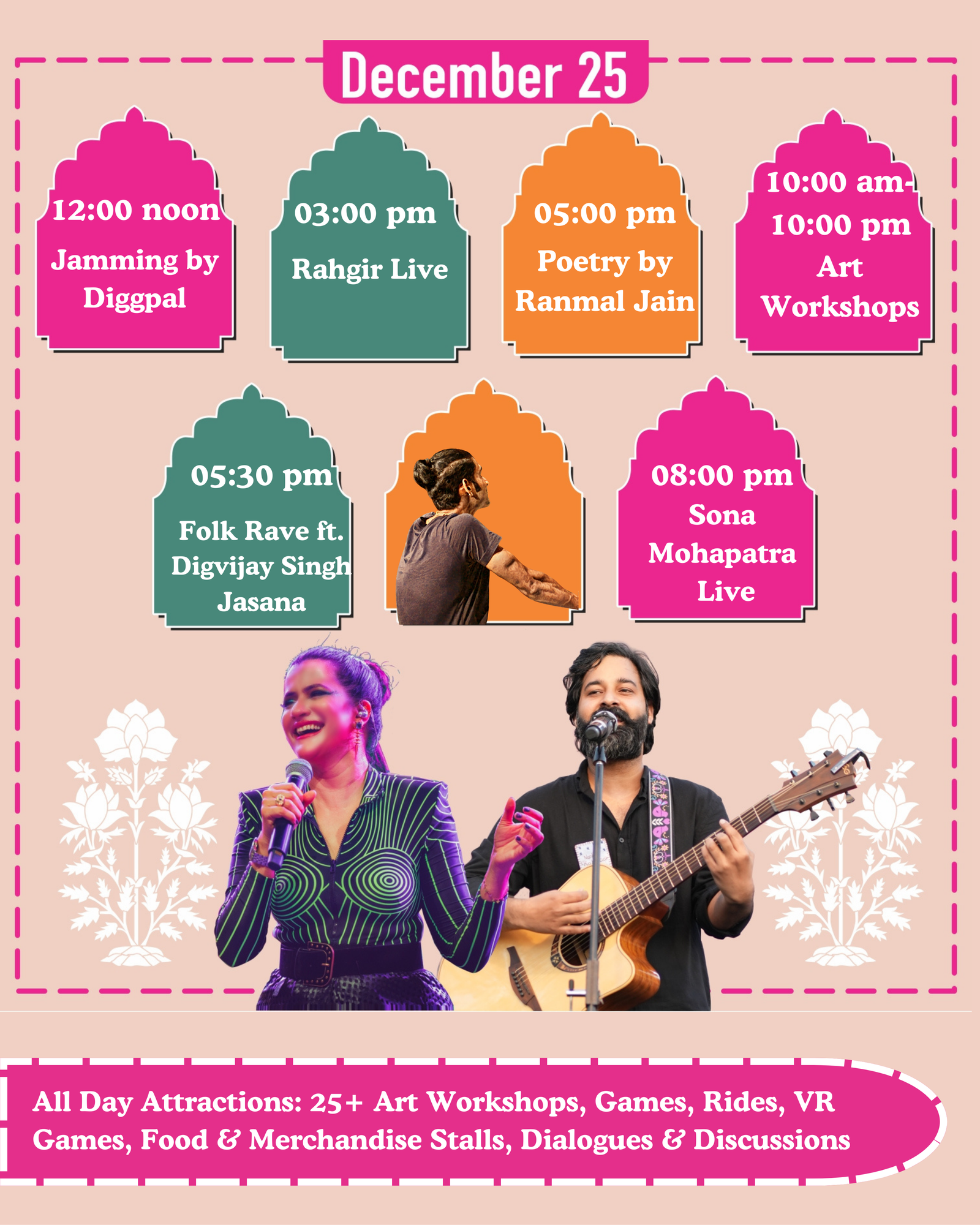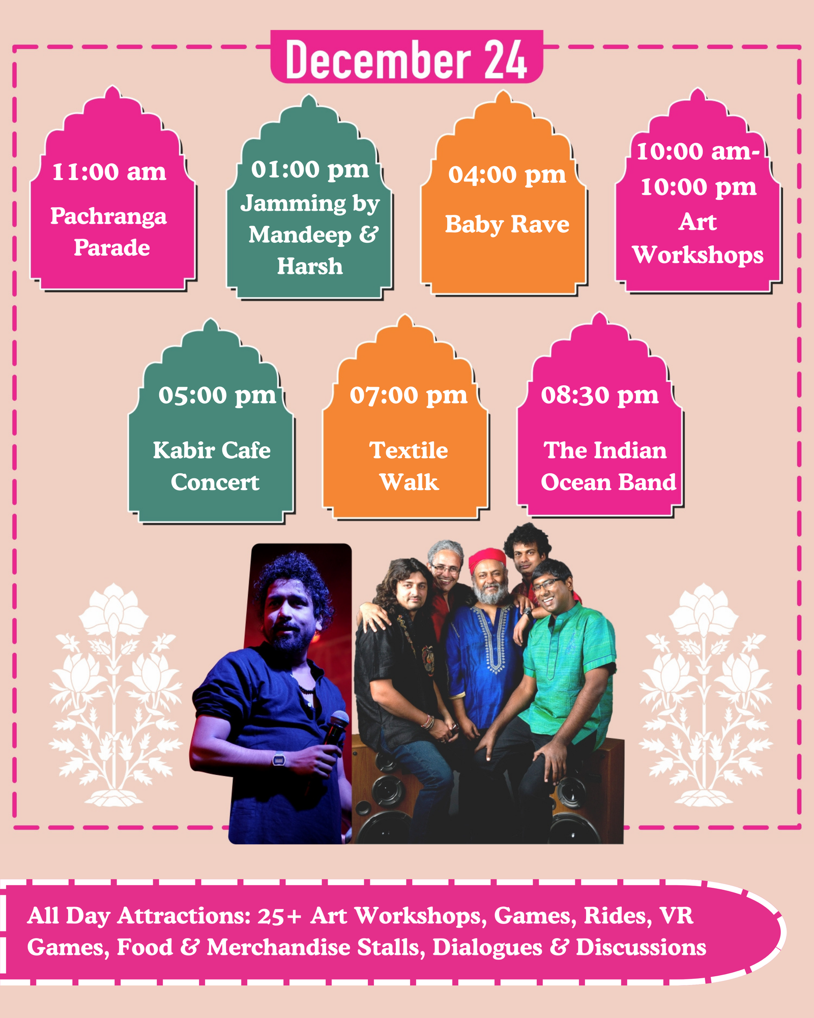 Live Concerts, featuring Sona Mohapatra, Rahgir, Neeraj Arya’s Kabir Cafe, and Indian Ocean Band